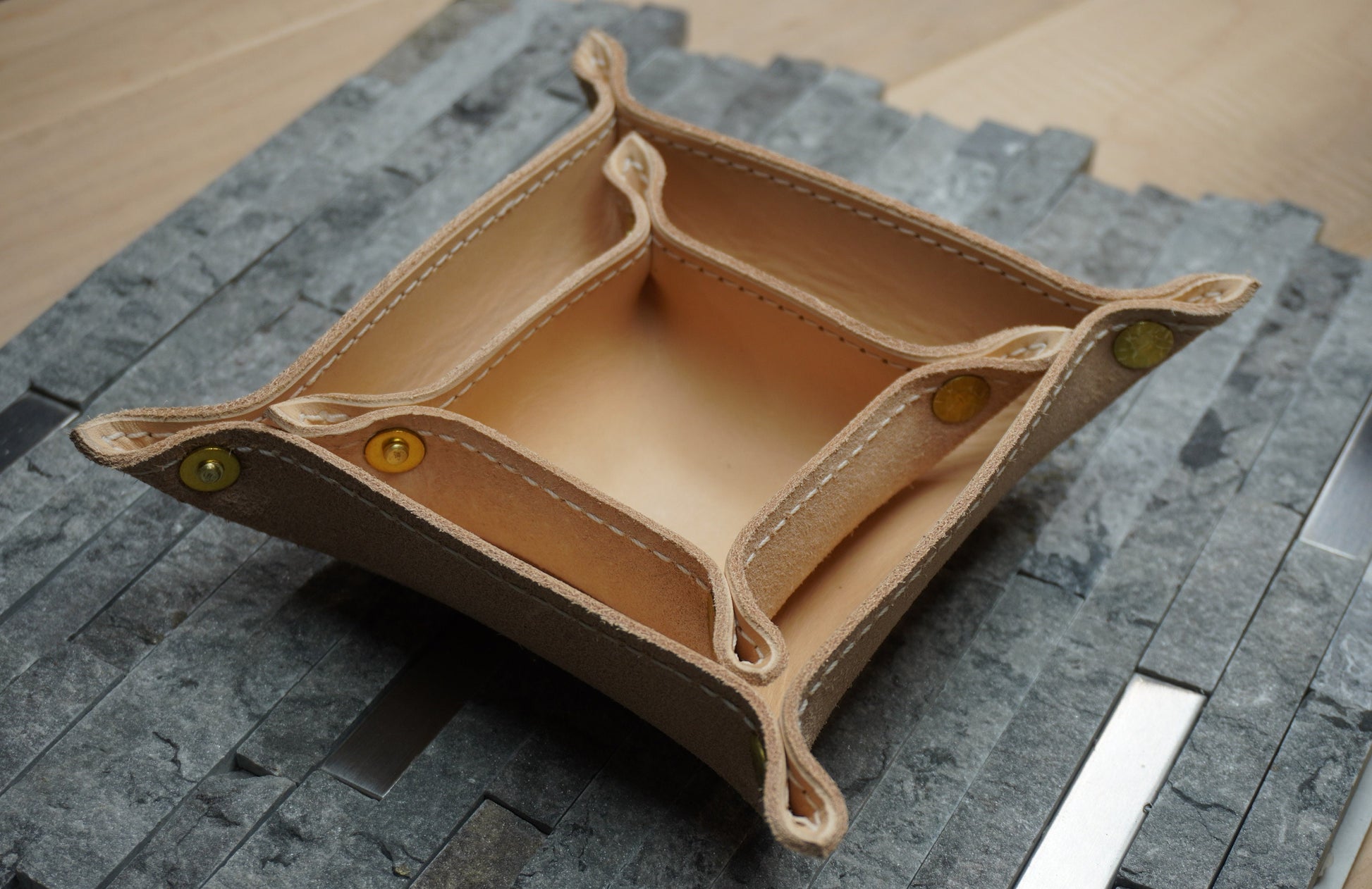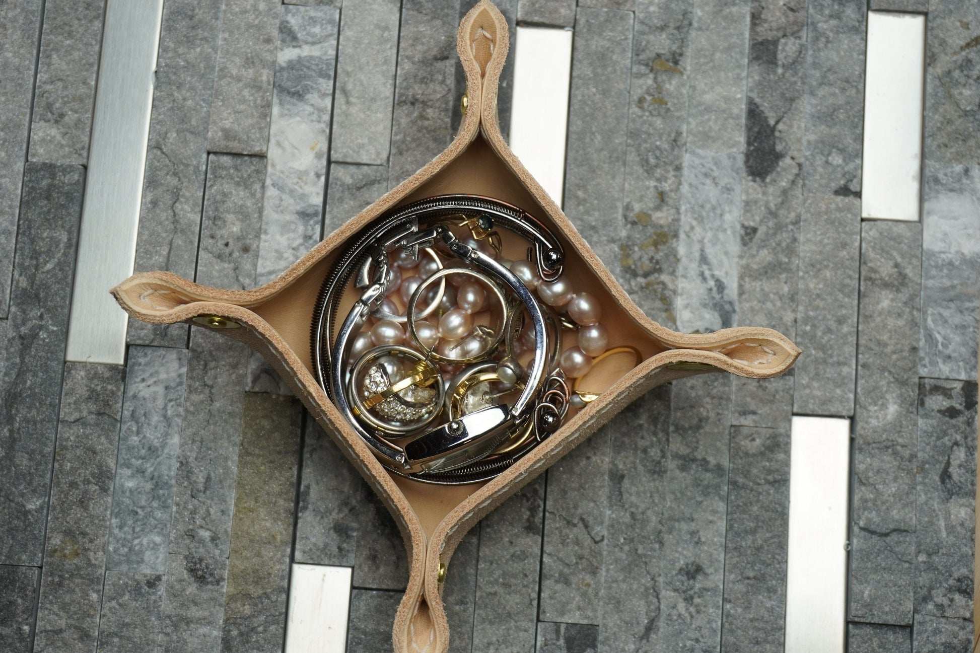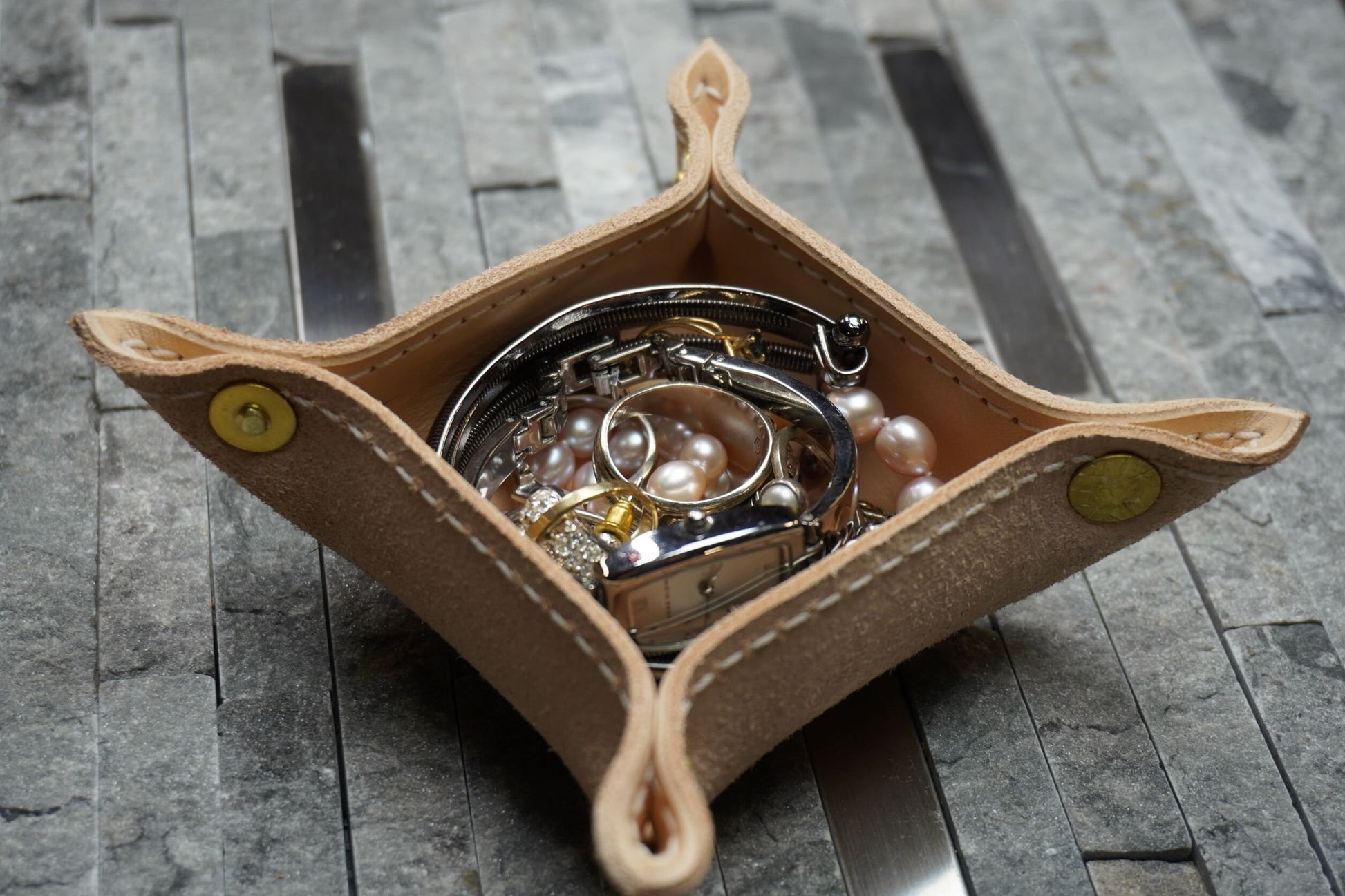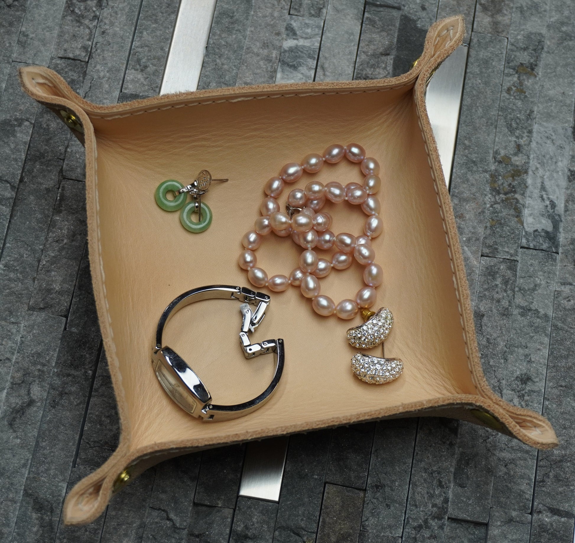 Natural leather Valet Tray for Jewelry, change or other small items.