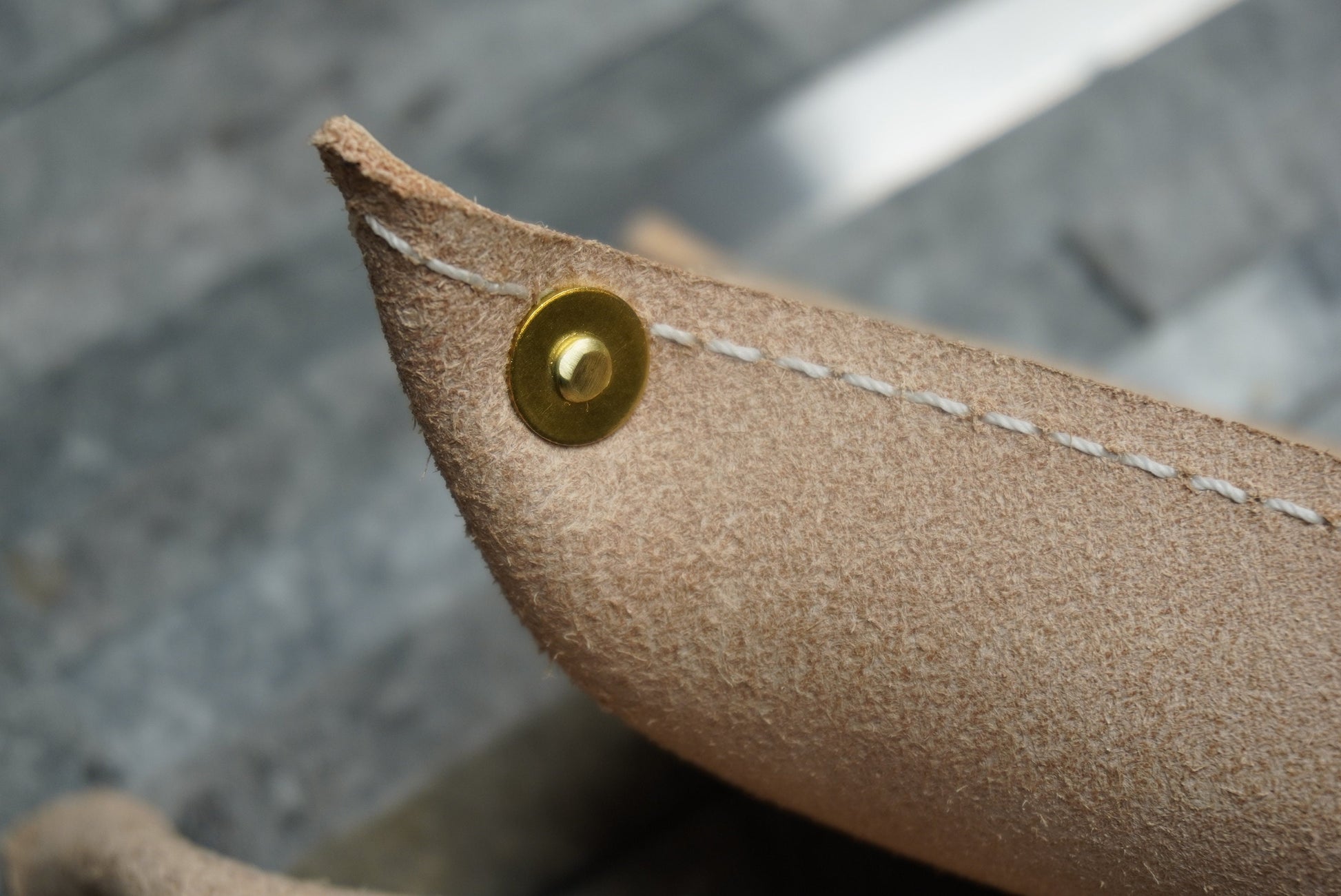 Each tray is made from 100% Full Grain Leather, decoratively stitched and held together with brass rivets.