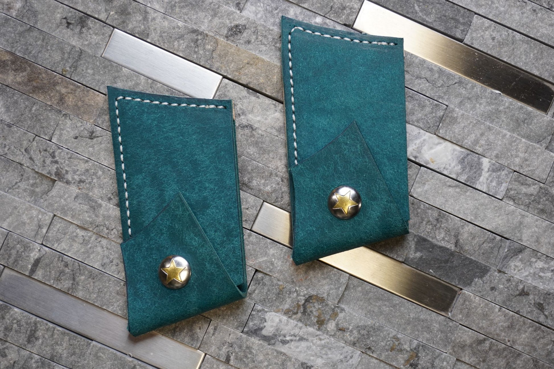 The Black sheath with OD Green inlay is a one-off that I made to try something out. It is made of 5 different layers of leather and is about 1/2 thick.